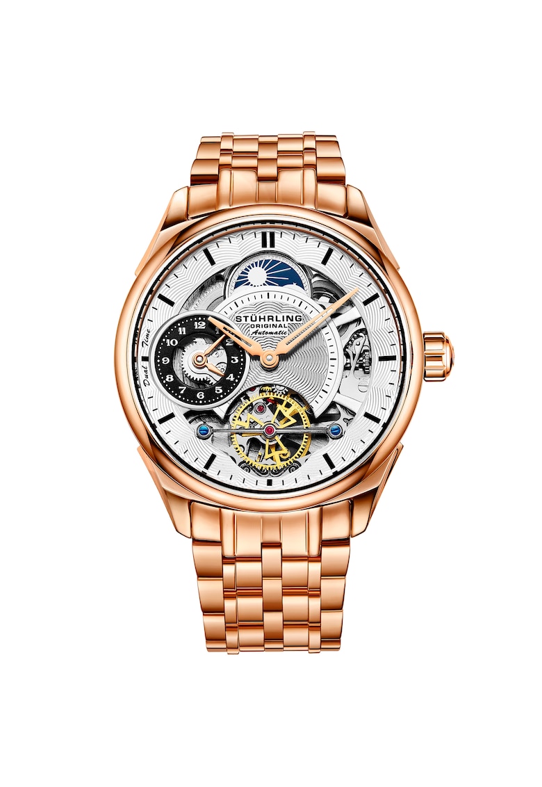 - dual time Rezistenta la apa: 5 atm Cadran Material geam: cristal mineral Tip citire cadran: linii Carcasa Forma carcasa: rotunda Material carcasa: inox Culoare carcasa: auriu rose Diametru carcasa: 42 mm Curea/bratara Tip: bratara Material curea/bratara: inox Culoare curea/bratara: auriu rose