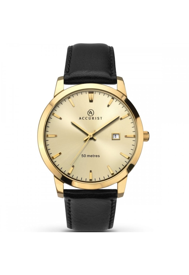 - afisare data Rezistenta la apa: 5 atm Cadran Material geam: cristal mineral Culoare cadran: auriu Culoare indici: auriu Tip citire cadran: linii Carcasa Forma carcasa: rotunda Material carcasa: inox Culoare carcasa: auriu Curea/bratara Material curea/bratara: piele ecologica