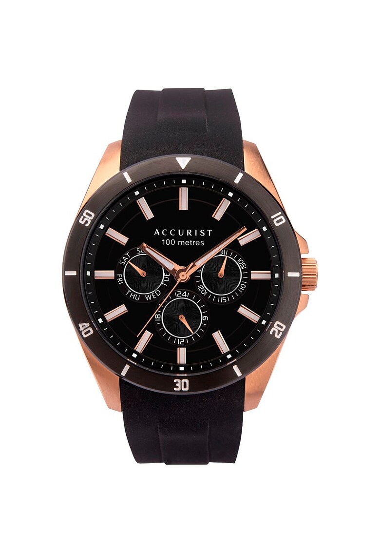 - afisare 24 h Rezistenta la apa: 10 atm Cadran Material geam: cristal mineral Culoare indici: auriu rose Tip citire cadran: linii Carcasa Forma carcasa: rotunda Material carcasa: inox Culoare carcasa: auriu rose Diametru carcasa: 42 mm Curea/bratara Material curea/bratara: cauciuc