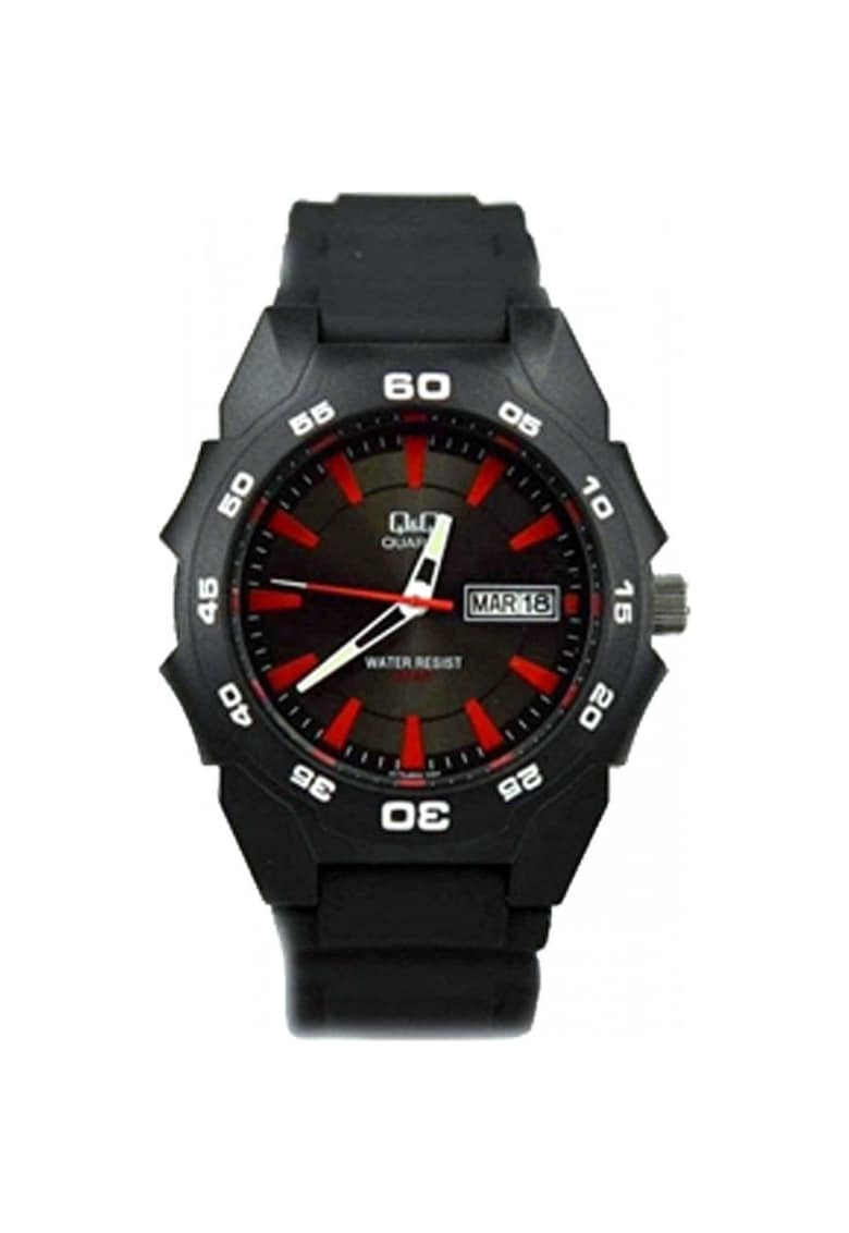 - ziua saptamanii Rezistenta la apa: 10 atm Cadran Material geam: cristal mineral Culoare cadran: negru Tip citire cadran: cifre arabe Carcasa Forma carcasa: rotunda Material carcasa: plastic Culoare carcasa: negru Diametru carcasa: 43 mm Curea/bratara Tip: bratara Material curea/bratara: plastic Culoare curea/bratara: negru
