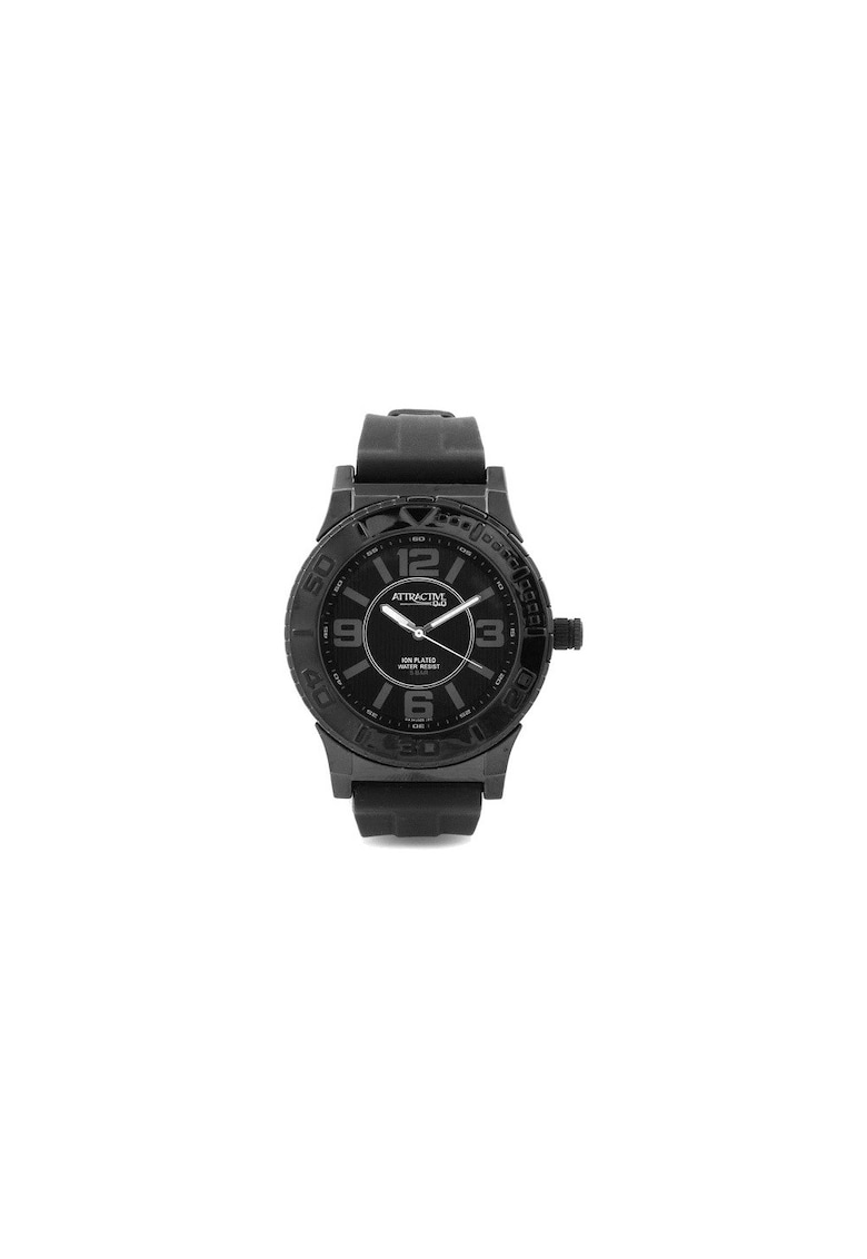 - secunda Rezistenta la apa: 5 atm Cadran Material geam: cristal mineral Culoare cadran: negru Tip citire cadran: cifre arabe Carcasa Forma carcasa: rotunda Material carcasa: alama Culoare carcasa: negru Diametru carcasa: 49 mm Curea/bratara Tip: bratara Material curea/bratara: silicon Culoare curea/bratara: negru