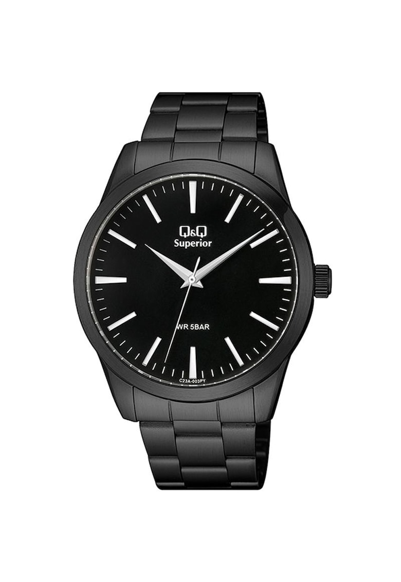 - secunda Rezistenta la apa: 5 atm Cadran Material geam: cristal mineral Culoare cadran: negru Tip citire cadran: linii Carcasa Forma carcasa: rotunda Material carcasa: alama Culoare carcasa: negru Diametru carcasa: 44 mm Curea/bratara Tip: bratara Material curea/bratara: otel Culoare curea/bratara: negru Latime curea/bratara: 22 mm