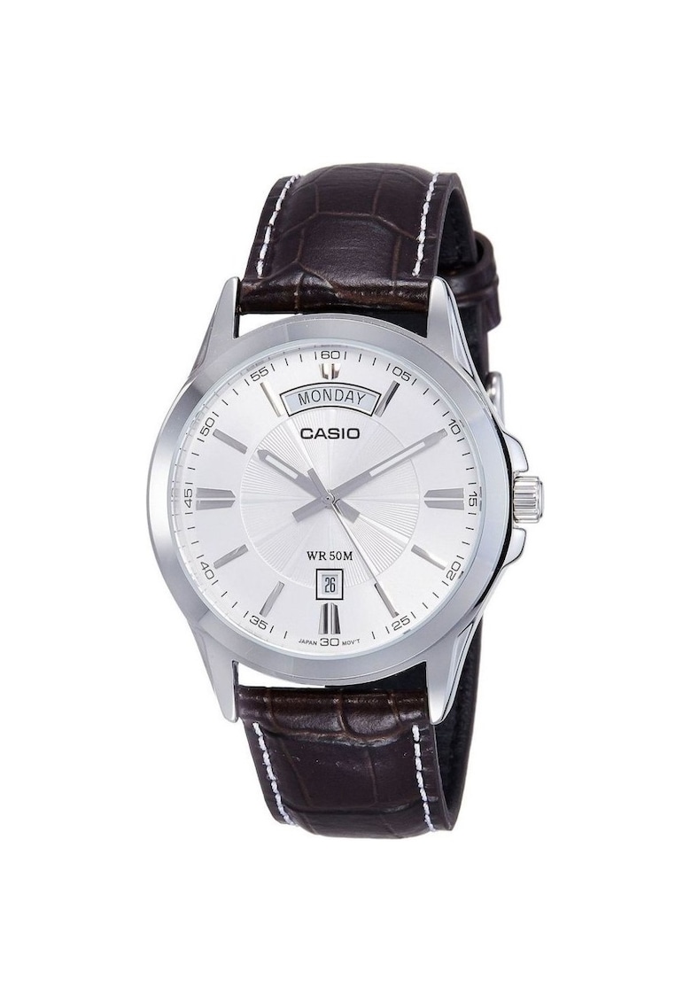 Caracteristici generale Tip mecanism: quartz Stil: casual Sistem inchidere: catarama Tip display: analog Functii: afisare data Rezistenta la apa: 5 atm Cadran Material geam: cristal mineral Culoare cadran: argint Tip citire cadran: linii Carcasa Forma carcasa: rotunda Material carcasa: titan Culoare carcasa: argintiu Diametru carcasa: 46 mm Curea/bratara Tip: curea Material curea/bratara: piele naturala Culoare curea/bratara: maro