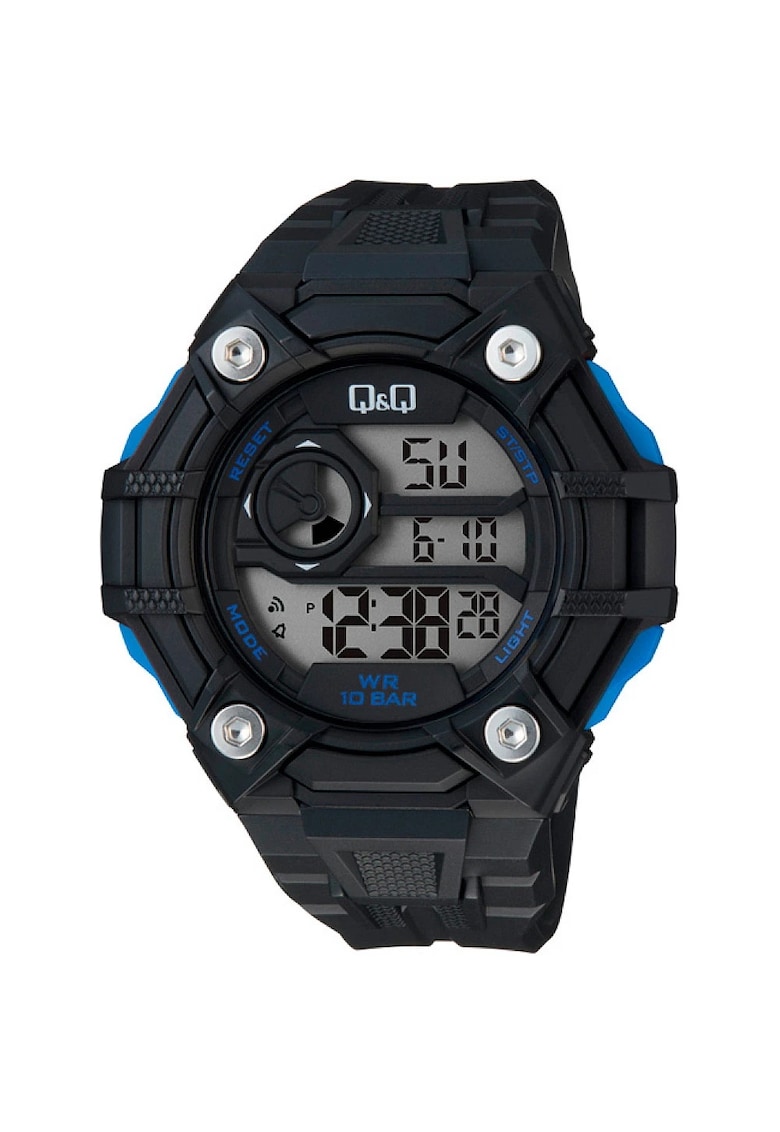 Caracteristici generale Tip mecanism: quartz Stil: sport Tip display: digital Functii: cronometru Rezistenta la apa: 10 atm Greutate: 56 g Cadran Material geam: plastic Culoare cadran: gri Carcasa Material carcasa: plastic Culoare carcasa: negru Diametru carcasa: 52.5 mm Grosime carcasa: 16.2 mm Curea/bratara Tip: curea Material curea/bratara: silicon Culoare curea/bratara: negru