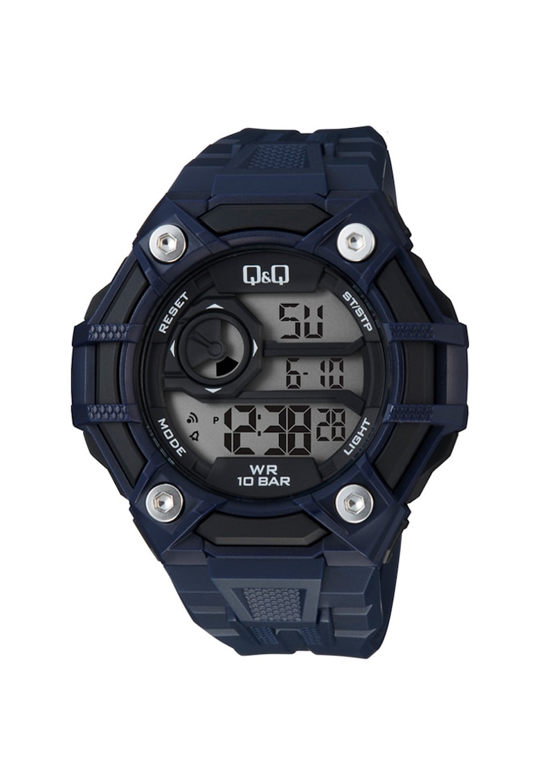 Caracteristici generale Tip mecanism: quartz Stil: sport Tip display: digital Functii: cronometru Rezistenta la apa: 10 atm Greutate: 56 g Cadran Material geam: plastic Culoare cadran: gri Carcasa Material carcasa: plastic Culoare carcasa: negru Diametru carcasa: 52.5 mm Grosime carcasa: 16.2 mm Curea/bratara Tip: curea Material curea/bratara: silicon Culoare curea/bratara: negru