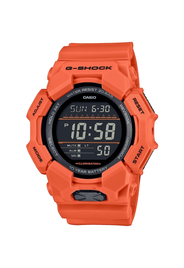 - lumina de fundal Rezistenta la apa: 20 atm Cadran Material geam: cristal mineral Culoare cadran: negru Tip citire cadran: cifre arabe Carcasa Forma carcasa: alta Material carcasa: rasina Culoare carcasa: portocaliu Diametru carcasa: 51 mm Curea/bratara Tip: curea Material curea/bratara: rasina Culoare curea/bratara: portocaliu