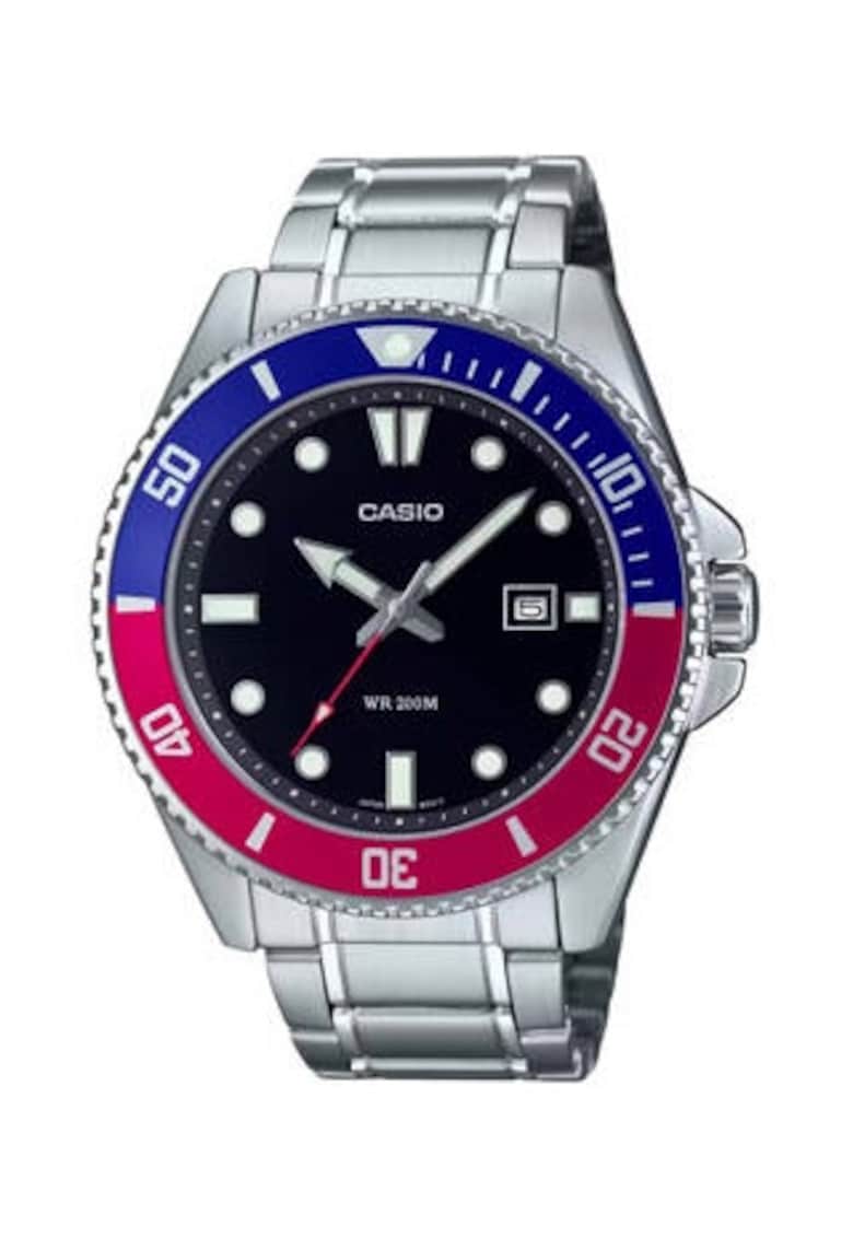 Caracteristici generale Tip mecanism: quartz Stil: casual Tip display: analog Functii: afisare data Rezistenta la apa: 20 atm Cadran Material geam: cristal mineral Culoare cadran: negru Tip citire cadran: puncte Carcasa Forma carcasa: rotunda Material carcasa: inox Culoare carcasa: albastru