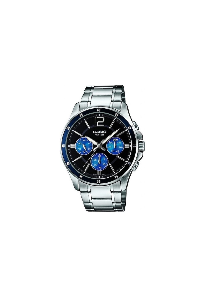 Caracteristici generale Tip mecanism: quartz Stil: casual Sistem inchidere: catarama tip fluture Tip display: analog Colectie: enticer Functii: afisare data Rezistenta la apa: 5 atm Cadran Material geam: cristal mineral Culoare cadran: multicolor Tip citire cadran: cifre arabe Carcasa Forma carcasa: rotunda Material carcasa: inox Culoare carcasa: multicolor Diametru carcasa: 46 mm Curea/bratara Tip: lant Material curea/bratara: inox Culoare curea/bratara: argintiu