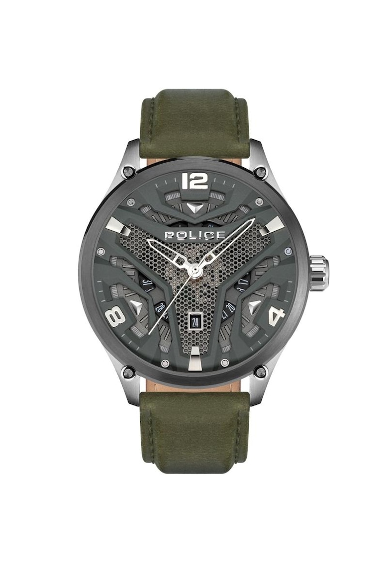 Caracteristici generale Tip mecanism: quartz Stil: casual Tip display: analog Functii: afisare data Rezistenta la apa: 3 atm Cadran Material geam: cristal mineral Culoare cadran: argintiu Tip citire cadran: linii Carcasa Forma carcasa: rotunda Material carcasa: inox Culoare carcasa: argintiu Diametru carcasa: 52 mm Curea/bratara Tip: curea Material curea/bratara: piele naturala Culoare curea/bratara: verde