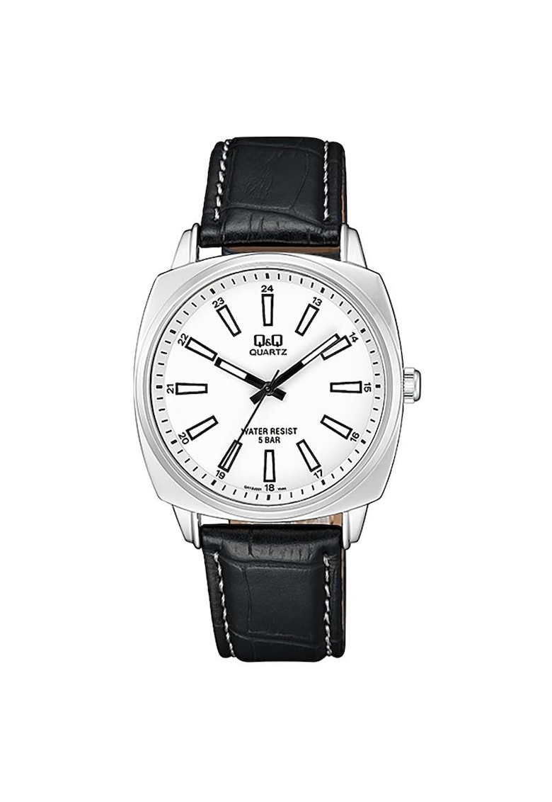 - secunda Rezistenta la apa: 5 atm Cadran Material geam: cristal mineral Culoare cadran: alb Tip citire cadran: linii Carcasa Forma carcasa: patrata Material carcasa: alama Culoare carcasa: argintiu Diametru carcasa: 39 mm Curea/bratara Tip: curea Material curea/bratara: piele naturala Culoare curea/bratara: negru