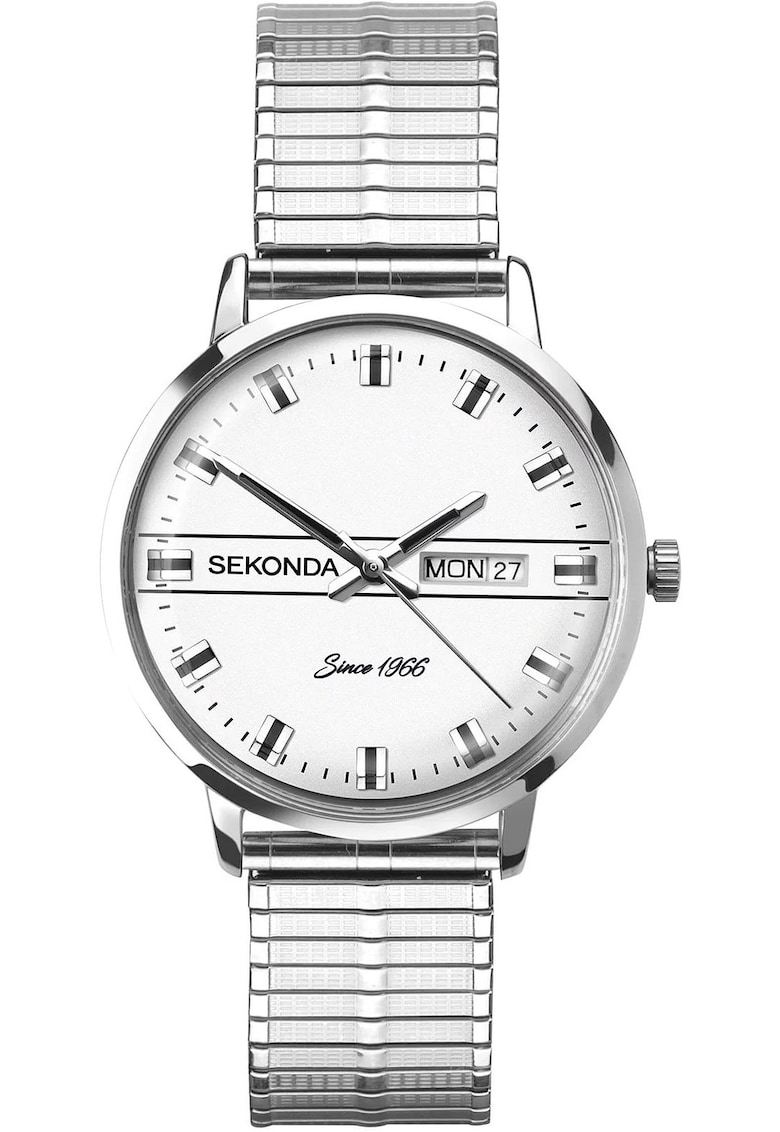 Caracteristici generale Tip mecanism: quartz Tip display: analog Rezistenta la apa: 3 atm Ambalaj: produsul este livrat cu un certificat de autenticitate. Cadran Material geam: cristal mineral Culoare cadran: alb Carcasa Material carcasa: metal Culoare carcasa: argint Curea/bratara Tip: bratara Material curea/bratara: otel Culoare curea/bratara: argint