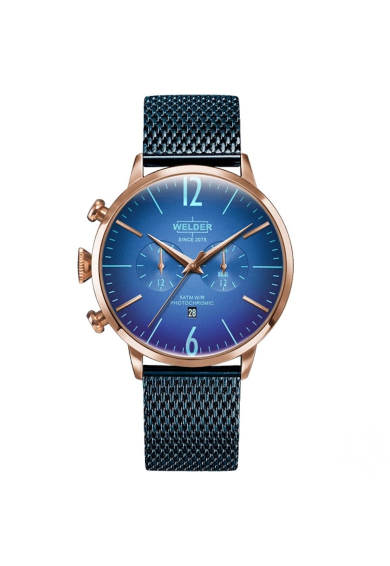 Caracteristici generale Tip mecanism: quartz Stil: casual Tip display: analog Functii: afisare data Rezistenta la apa: 5 atm Cadran Material geam: cristal mineral Culoare cadran: albastru Tip citire cadran: linii Carcasa Forma carcasa: rotunda Material carcasa: inox Culoare carcasa: auriu Diametru carcasa: 45 mm Curea/bratara Tip: plasa Material curea/bratara: inox Culoare curea/bratara: albastru