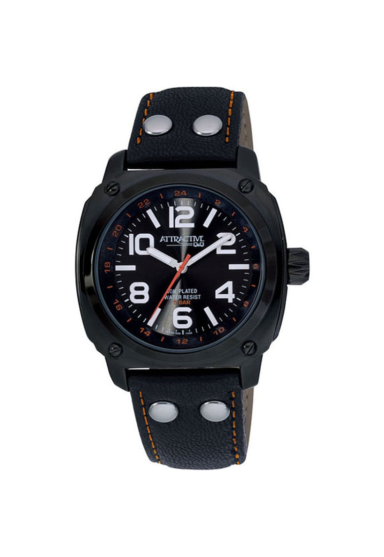 Caracteristici generale Tip mecanism: quartz Stil: casual Tip display: analog Functii: minut Rezistenta la apa: 5 atm Cadran Material geam: cristal mineral Culoare cadran: negru Tip citire cadran: cifre arabe Carcasa Forma carcasa: rotunda Material carcasa: inox Culoare carcasa: negru Diametru carcasa: 42 mm Curea/bratara Tip: curea Material curea/bratara: piele naturala Culoare curea/bratara: negru