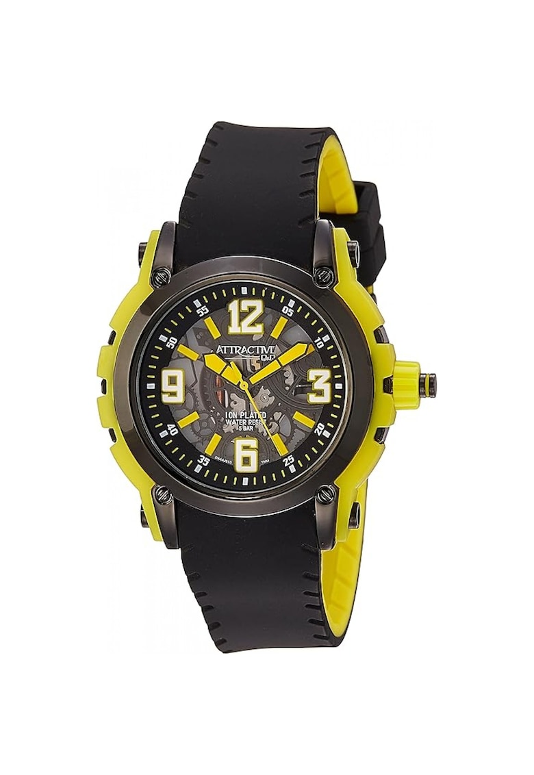 Caracteristici generale Tip mecanism: quartz Stil: casual Tip display: analog Functii: minut Rezistenta la apa: 5 atm Cadran Material geam: cristal mineral Culoare cadran: negru Tip citire cadran: cifre arabe Carcasa Forma carcasa: rotunda Material carcasa: alama Culoare carcasa: negru Diametru carcasa: 47 mm Curea/bratara Tip: curea Material curea/bratara: plastic Culoare curea/bratara: negru
