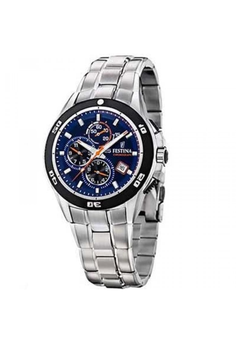Caracteristici generale Tip mecanism: quartz Stil: casual Tip display: analog Functii: afisare data Rezistenta la apa: 10 atm Cadran Material geam: cristal mineral Culoare cadran: albastru Tip citire cadran: linii Carcasa Forma carcasa: rotunda Material carcasa: inox Culoare carcasa: negru Diametru carcasa: 42 mm Curea/bratara Tip: bratara Material curea/bratara: inox Culoare curea/bratara: argintiu