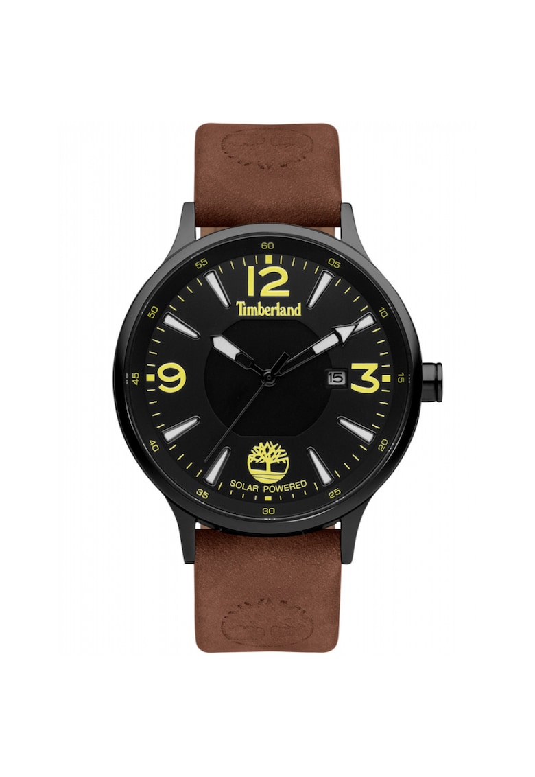 Caracteristici generale Tip mecanism: quartz Stil: casual Tip display: analog Functii: afisare data Rezistenta la apa: 5 atm Cadran Material geam: cristal mineral Culoare cadran: negru Tip citire cadran: linii Carcasa Forma carcasa: rotunda Material carcasa: inox Culoare carcasa: negru Diametru carcasa: 43 mm Curea/bratara Tip: curea Material curea/bratara: piele naturala Culoare curea/bratara: maro