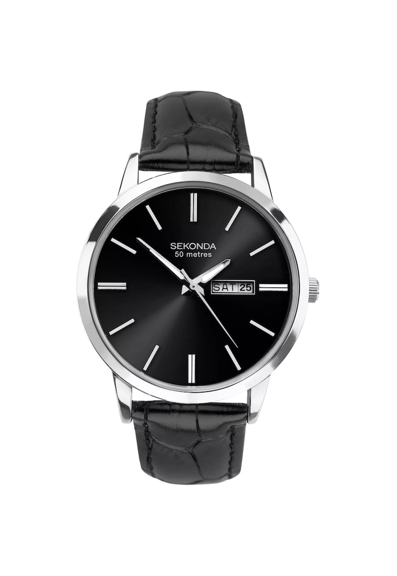 Caracteristici generale Tip mecanism: quartz Stil: casual Sistem inchidere: catarama Tip display: analog Colectie: classic Rezistenta la apa: 5 atm Cadran Material geam: cristal mineral Culoare cadran: negru Tip citire cadran: linii Carcasa Forma carcasa: rotunda Material carcasa: alama Culoare carcasa: argintiu Dimensiune carcasa: 42 x 42 Curea/bratara Material curea/bratara: piele naturala Culoare curea/bratara: negru