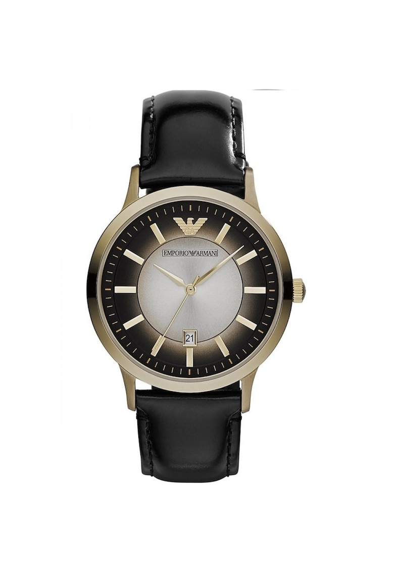 Caracteristici generale Tip mecanism: quartz Stil: elegant Tip display: analog Functii: afisare data Rezistenta la apa: 5 atm Cadran Material geam: cristal mineral Culoare cadran: maro Tip citire cadran: linii Carcasa Forma carcasa: rotunda Material carcasa: inox Culoare carcasa: auriu Diametru carcasa: 40 mm Curea/bratara Tip: curea Material curea/bratara: piele naturala Culoare curea/bratara: negru