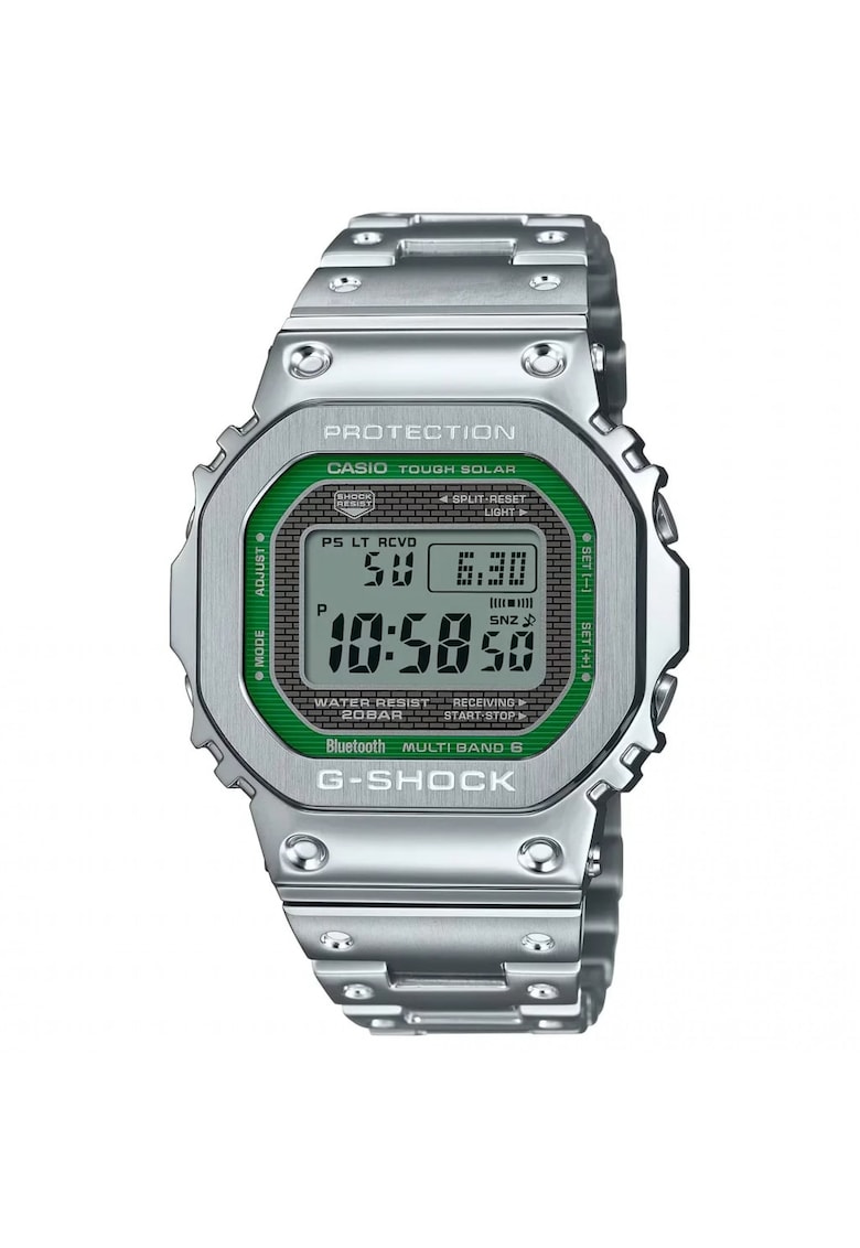Caracteristici generale Tip mecanism: quartz Stil: casual Tip display: digital Functii: afisare data Rezistenta la apa: 20 atm Cadran Material geam: cristal mineral Culoare cadran: verde Tip citire cadran: cifre arabe Carcasa Forma carcasa: dreptunghiulara Material carcasa: inox Culoare carcasa: argintiu Diametru carcasa: 43 mm Curea/bratara Tip: bratara Material curea/bratara: inox Culoare curea/bratara: argintiu