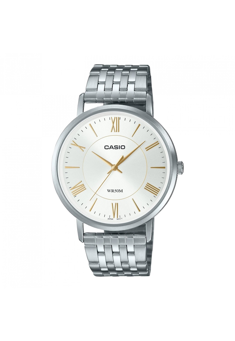 Caracteristici generale Tip mecanism: quartz Stil: casual Tip display: analog Functii: afisare data Rezistenta la apa: 5 atm Cadran Material geam: cristal mineral Culoare cadran: argintiu Tip citire cadran: cifre romane Carcasa Forma carcasa: rotunda Material carcasa: inox Culoare carcasa: argintiu Diametru carcasa: 40 mm Curea/bratara Tip: bratara Material curea/bratara: inox Culoare curea/bratara: argintiu