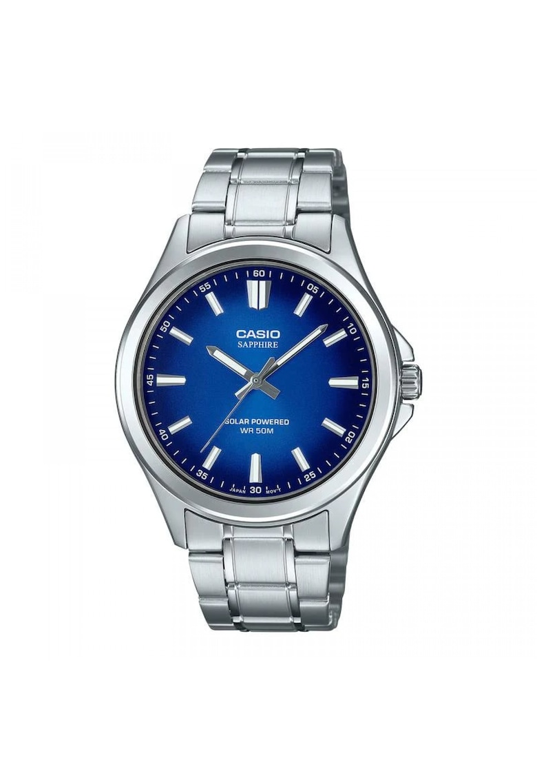 Caracteristici generale Tip mecanism: quartz Stil: casual Tip display: analog Functii: afisare data Rezistenta la apa: 5 atm Cadran Material geam: cristal safir Culoare cadran: albastru Tip citire cadran: linii Carcasa Forma carcasa: rotunda Material carcasa: inox Culoare carcasa: argintiu Diametru carcasa: 42 mm Curea/bratara Tip: bratara Material curea/bratara: inox Culoare curea/bratara: argintiu