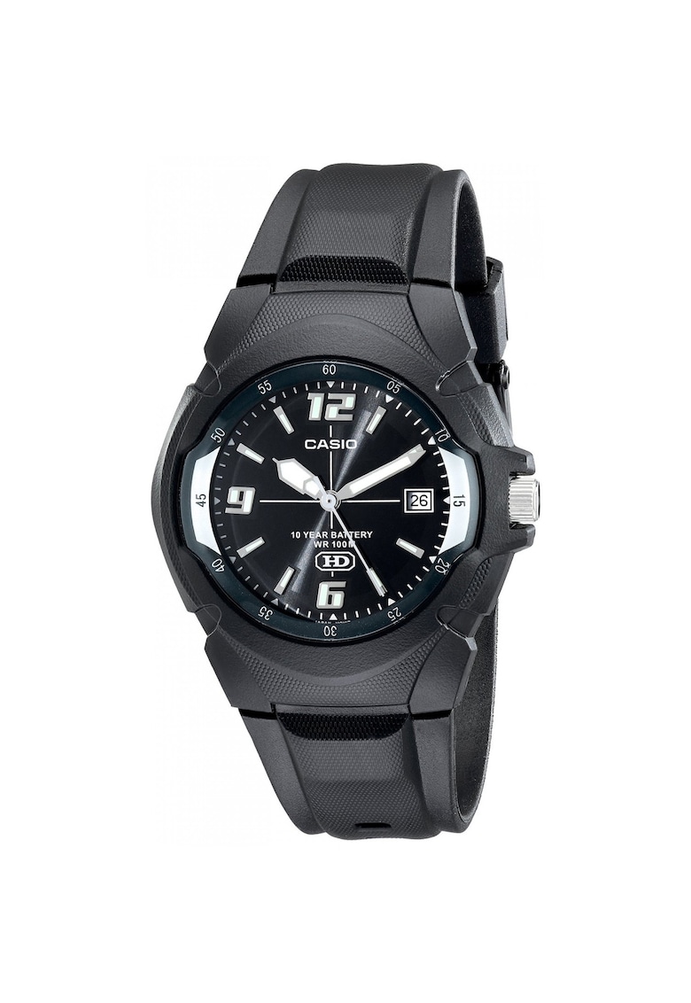 Caracteristici generale Tip mecanism: quartz Stil: elegant Tip display: analog Functii: afisare data Rezistenta la apa: 10 atm Cadran Material geam: cristal mineral Culoare cadran: negru Tip citire cadran: linii Carcasa Forma carcasa: rotunda Material carcasa: rasina Culoare carcasa: negru Diametru carcasa: 42 mm Curea/bratara Tip: curea Material curea/bratara: rasina Culoare curea/bratara: negru