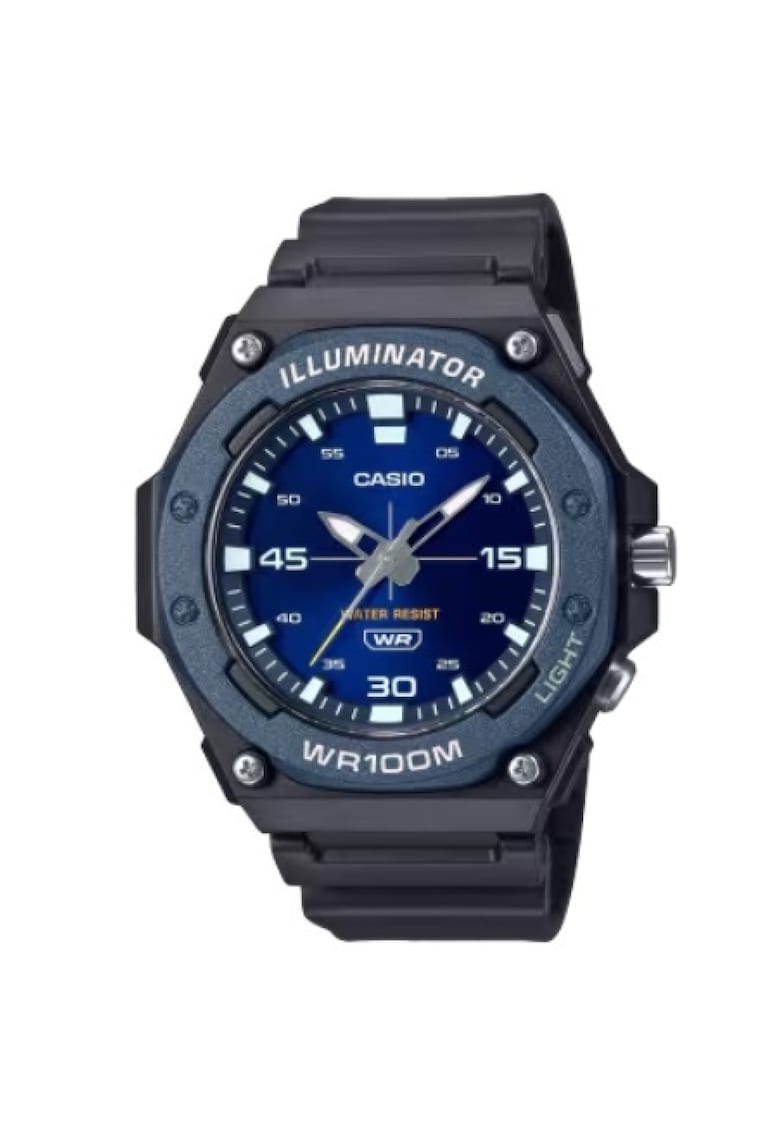 Caracteristici generale Tip mecanism: quartz Stil: casual Tip display: analog Functii: afisare data Rezistenta la apa: 10 atm Cadran Material geam: cristal mineral Culoare cadran: albastru Tip citire cadran: linii Carcasa Forma carcasa: rotunda Material carcasa: rasina Culoare carcasa: negru Diametru carcasa: 48 mm Curea/bratara Tip: curea Material curea/bratara: rasina Culoare curea/bratara: negru