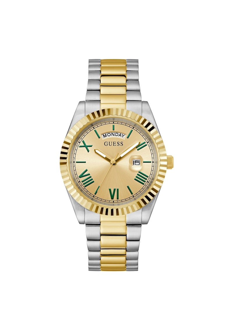 - auriu Diametru carcasa: 42 mm Curea/bratara Tip: bratara Material curea/bratara: inox Culoare curea/bratara: argint