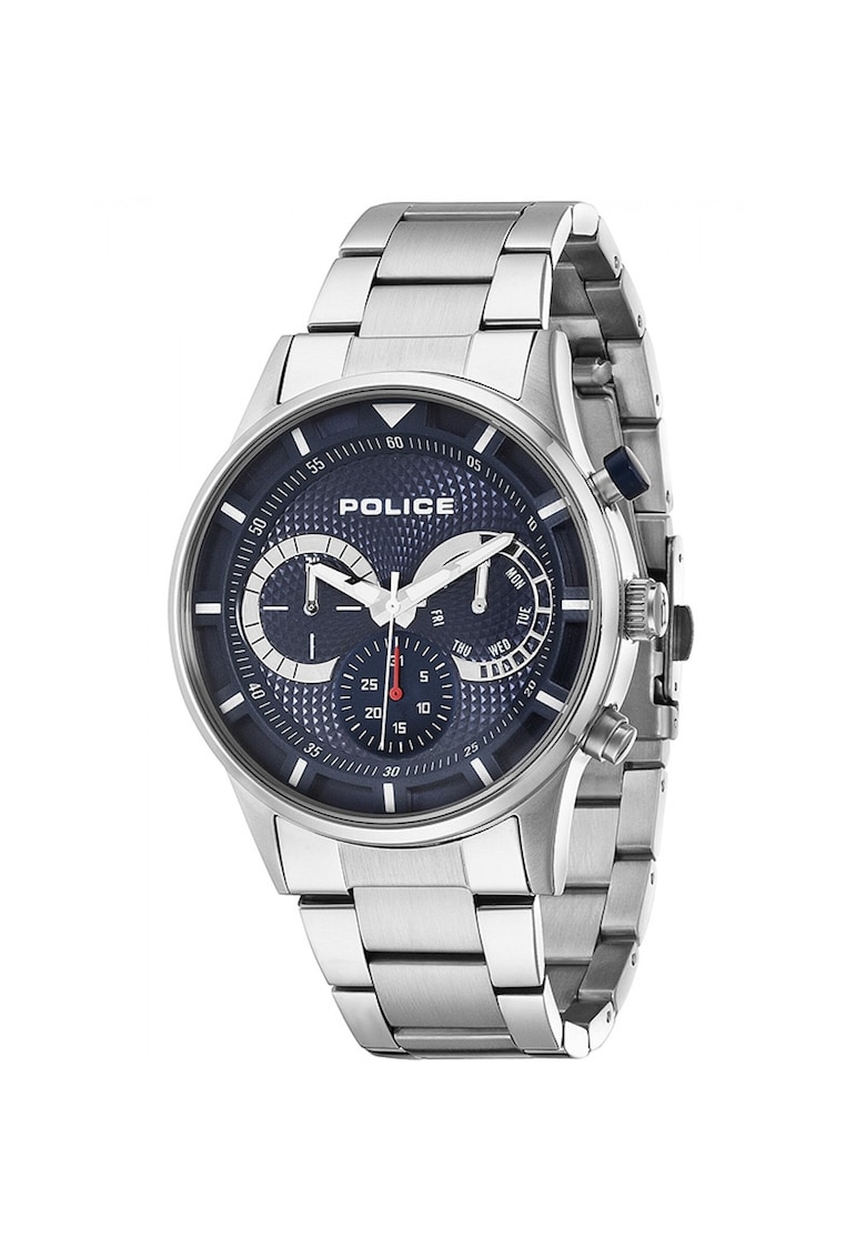 Caracteristici generale Tip mecanism: quartz Stil: casual Sistem inchidere: catarama tip fluture Tip display: analog Functii: afisare data Rezistenta la apa: 5 atm Cadran Material geam: cristal mineral Culoare cadran: negru Tip citire cadran: linii Carcasa Forma carcasa: rotunda Material carcasa: inox Culoare carcasa: argintiu Diametru carcasa: 45 mm Curea/bratara Tip: bratara Material curea/bratara: inox Culoare curea/bratara: argintiu