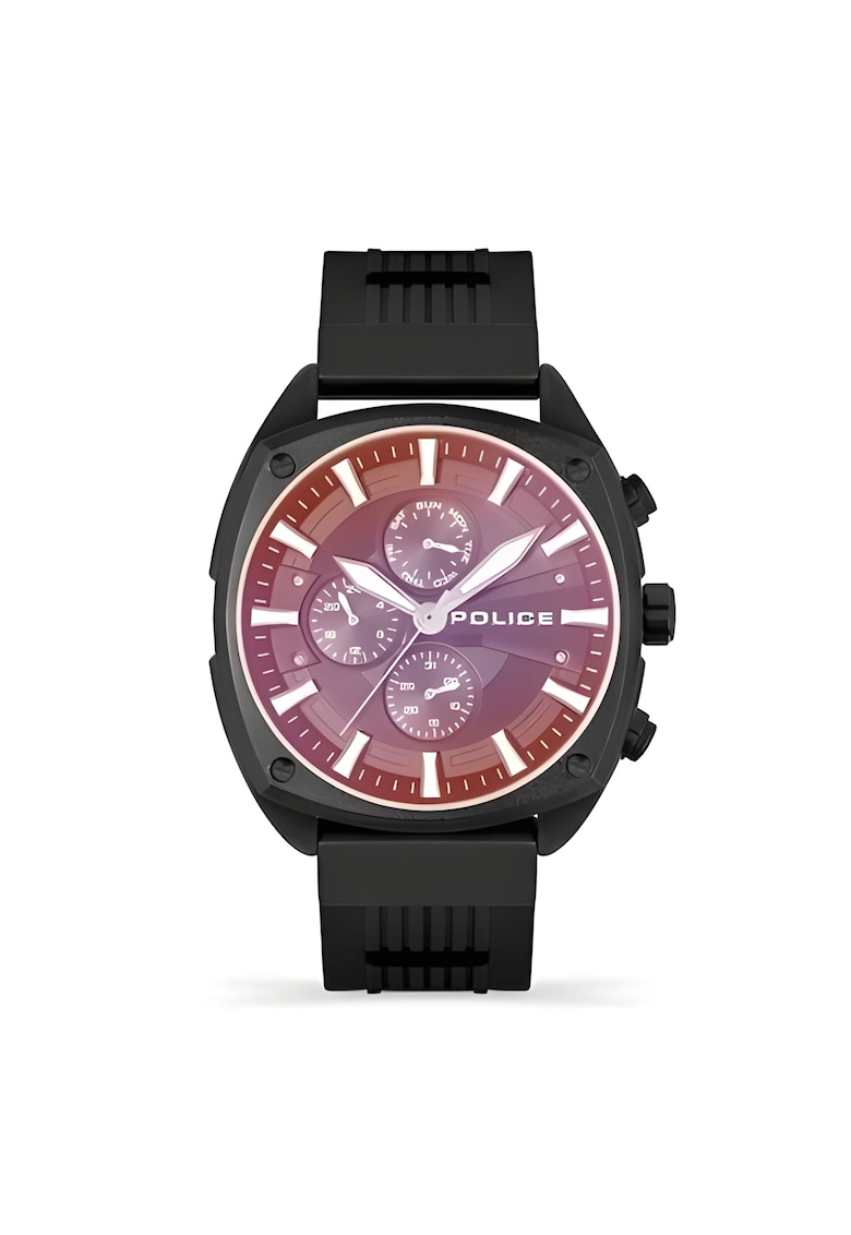 Caracteristici generale Tip mecanism: quartz Stil: casual Tip display: analog Functii: afisare data Rezistenta la apa: 3 atm Cadran Material geam: cristal mineral Culoare cadran: negru Tip citire cadran: linii Carcasa Forma carcasa: rotunda Material carcasa: inox Culoare carcasa: negru Diametru carcasa: 47 mm Curea/bratara Tip: curea Material curea/bratara: silicon Culoare curea/bratara: negru