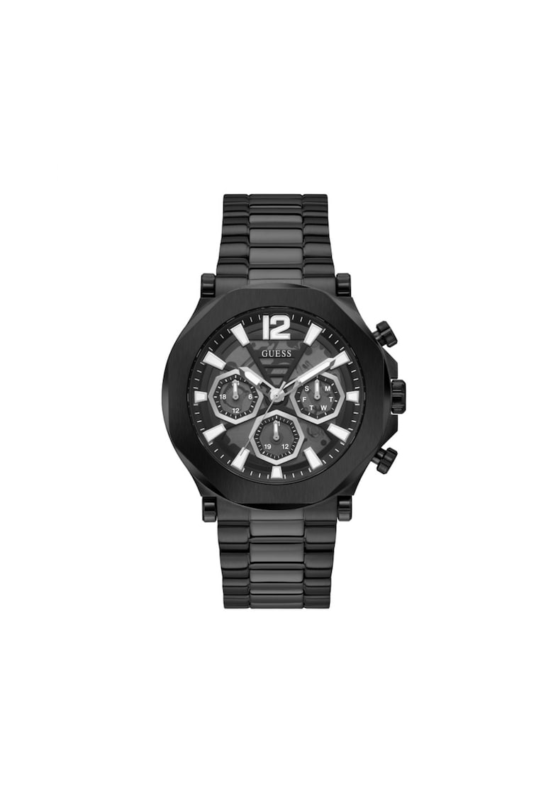 Caracteristici generale Tip mecanism: quartz Stil: casual Tip display: analog Functii: afisare data Rezistenta la apa: 5 atm Cadran Material geam: cristal mineral Culoare cadran: negru Tip citire cadran: linii Carcasa Forma carcasa: rotunda Material carcasa: inox Culoare carcasa: negru Diametru carcasa: 46 mm Curea/bratara Tip: bratara Material curea/bratara: inox Culoare curea/bratara: negru