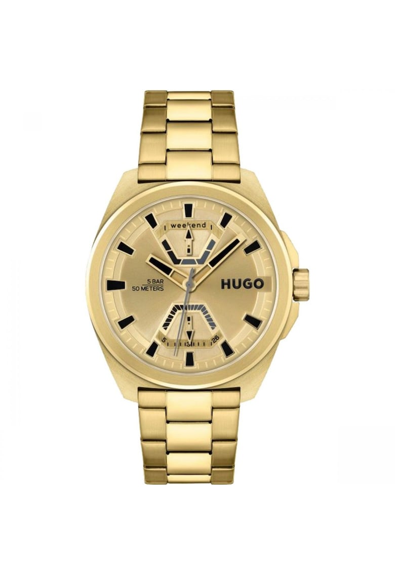 Caracteristici generale Tip mecanism: quartz Stil: casual Tip display: analog Functii: minut Rezistenta la apa: 5 atm Cadran Material geam: cristal mineral Culoare cadran: auriu Tip citire cadran: linii Carcasa Forma carcasa: rotunda Material carcasa: inox Culoare carcasa: auriu Diametru carcasa: 38 mm Curea/bratara Tip: bratara Material curea/bratara: inox Culoare curea/bratara: auriu