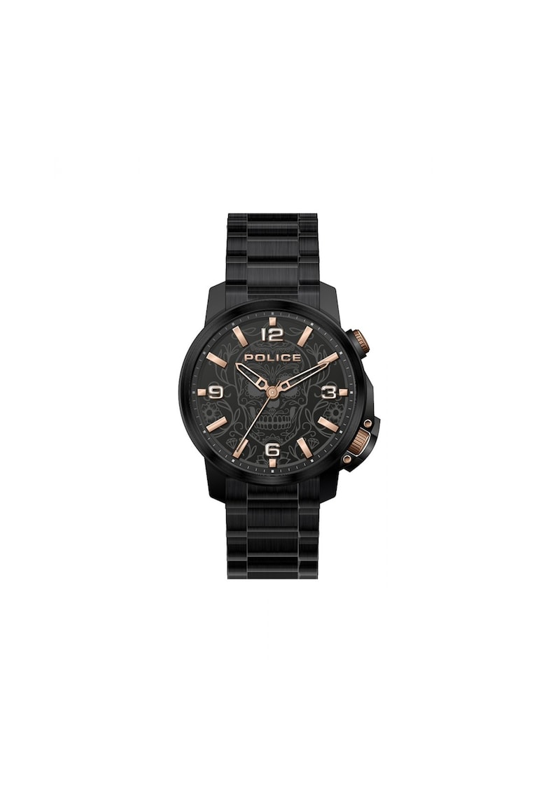 Caracteristici generale Tip mecanism: quartz Stil: casual Tip display: analog Functii: minut Rezistenta la apa: 5 atm Cadran Material geam: cristal mineral Culoare cadran: negru Tip citire cadran: linii Carcasa Forma carcasa: rotunda Material carcasa: inox Culoare carcasa: negru Diametru carcasa: 44 mm Curea/bratara Tip: curea Material curea/bratara: inox Culoare curea/bratara: negru