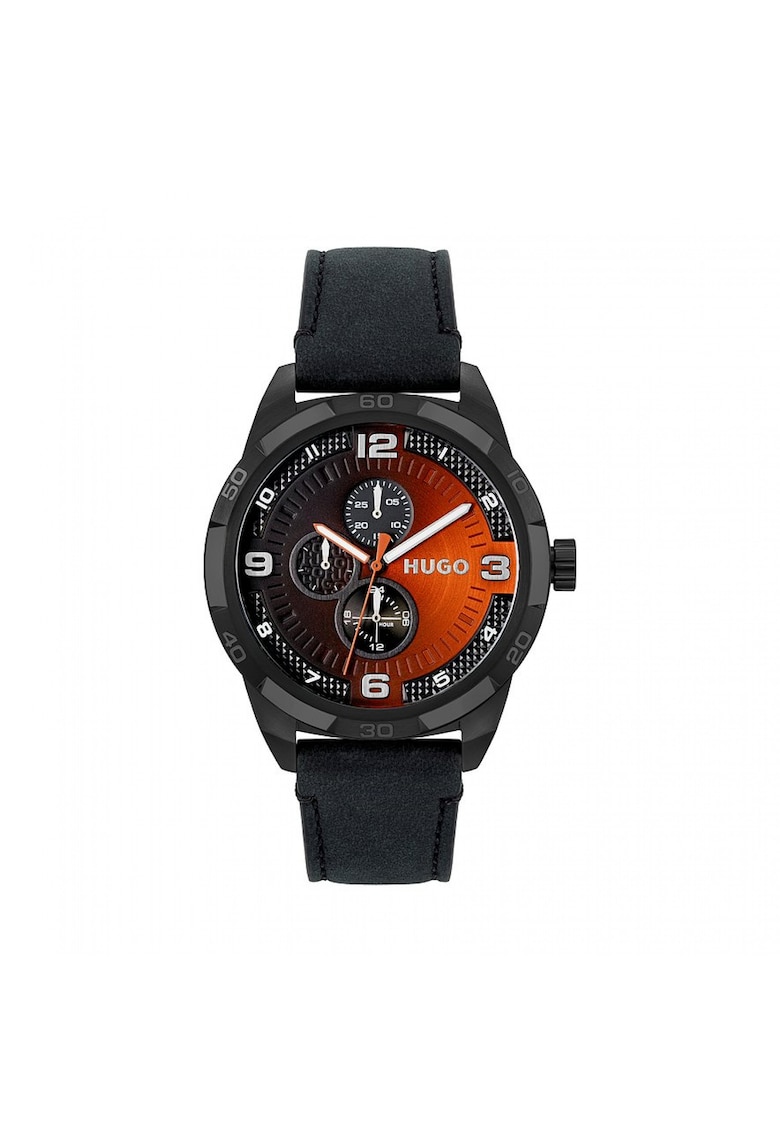 Caracteristici generale Tip mecanism: quartz Stil: casual Tip display: analog Functii: minut Rezistenta la apa: 5 atm Cadran Material geam: cristal mineral Culoare cadran: rosu Tip citire cadran: cifre arabe Carcasa Forma carcasa: rotunda Material carcasa: inox Culoare carcasa: negru Diametru carcasa: 45 mm Curea/bratara Tip: curea Material curea/bratara: piele naturala Culoare curea/bratara: negru