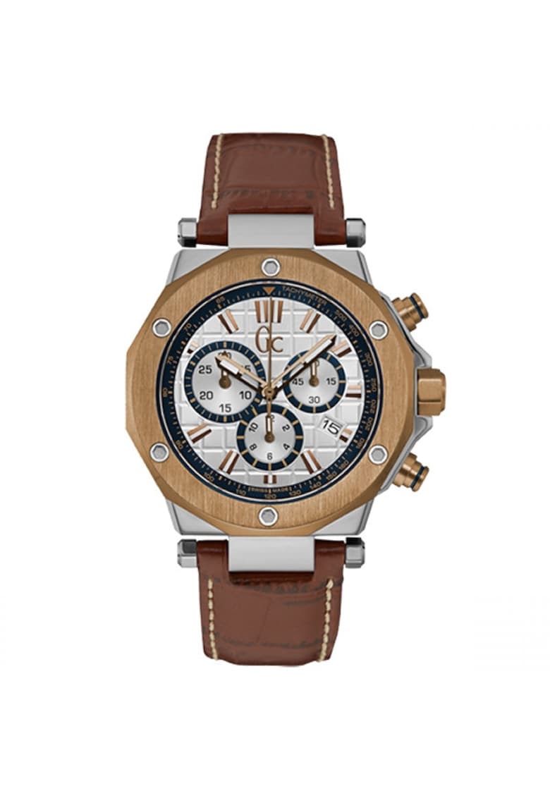 Caracteristici generale Tip mecanism: quartz Stil: elegant Tip display: analog Functii: cronograf Rezistenta la apa: 10 atm Cadran Material geam: cristal mineral Culoare cadran: alb Tip citire cadran: linii Carcasa Forma carcasa: rotunda Material carcasa: inox Culoare carcasa: auriu Diametru carcasa: 43 mm Curea/bratara Tip: curea Material curea/bratara: piele naturala Culoare curea/bratara: maro