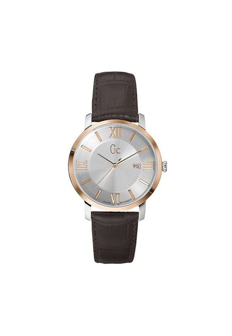 Caracteristici generale Tip mecanism: quartz Stil: elegant Tip display: analog Functii: afisare data Rezistenta la apa: 3 atm Cadran Material geam: cristal mineral Culoare cadran: argintiu Tip citire cadran: cifre romane Carcasa Forma carcasa: rotunda Material carcasa: inox Culoare carcasa: auriu Diametru carcasa: 40 mm Curea/bratara Tip: curea Material curea/bratara: piele naturala Culoare curea/bratara: maro