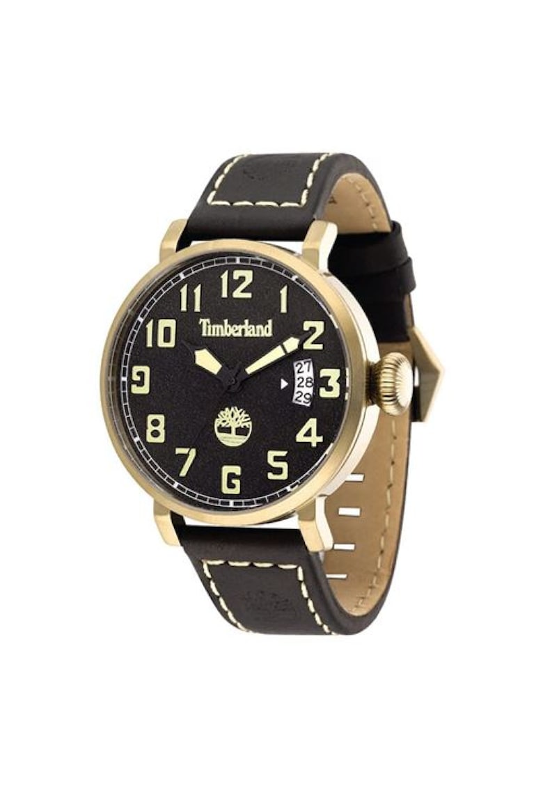 Caracteristici generale Tip mecanism: quartz Stil: casual Tip display: analog Functii: afisare data Rezistenta la apa: 5 atm Cadran Material geam: cristal mineral Culoare cadran: negru Tip citire cadran: cifre arabe Carcasa Forma carcasa: rotunda Material carcasa: inox Culoare carcasa: auriu Diametru carcasa: 46 mm Curea/bratara Tip: curea Material curea/bratara: piele naturala Culoare curea/bratara: negru