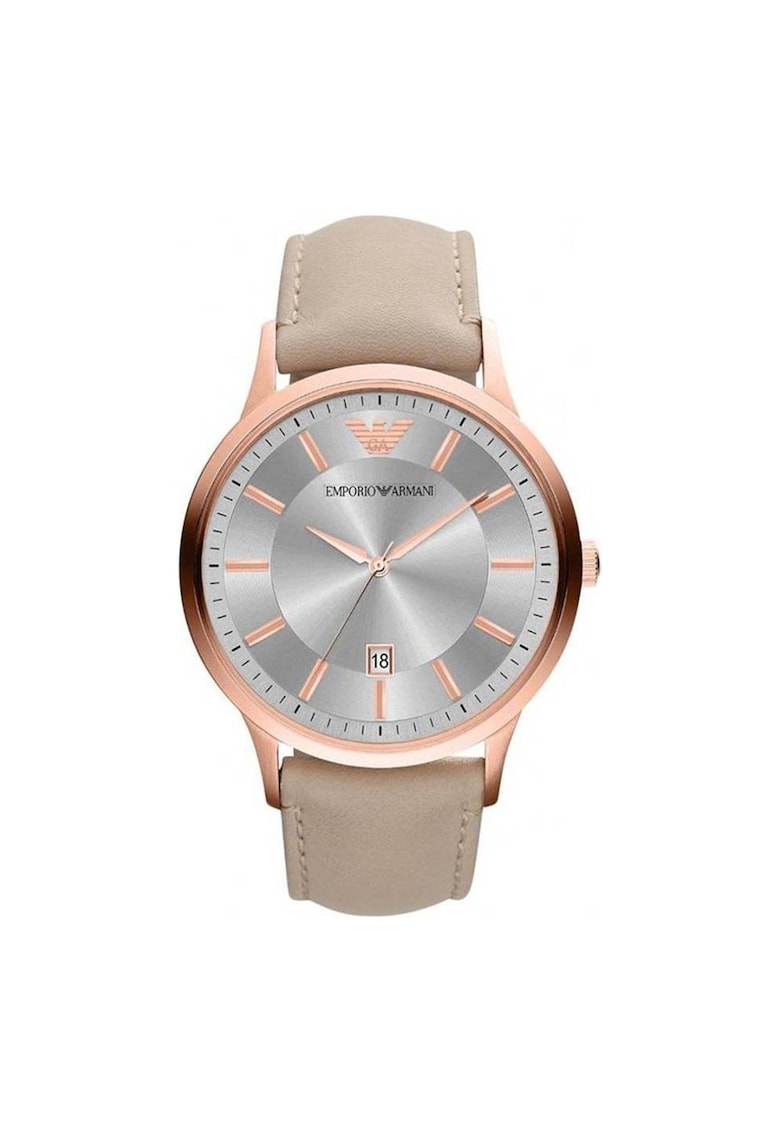 Caracteristici generale Tip mecanism: quartz Stil: elegant Tip display: analog Functii: afisare data Rezistenta la apa: 5 atm Cadran Material geam: cristal mineral Culoare cadran: gri Tip citire cadran: linii Carcasa Forma carcasa: rotunda Material carcasa: inox Culoare carcasa: auriu Diametru carcasa: 43 mm Curea/bratara Tip: curea Material curea/bratara: piele naturala Culoare curea/bratara: gri