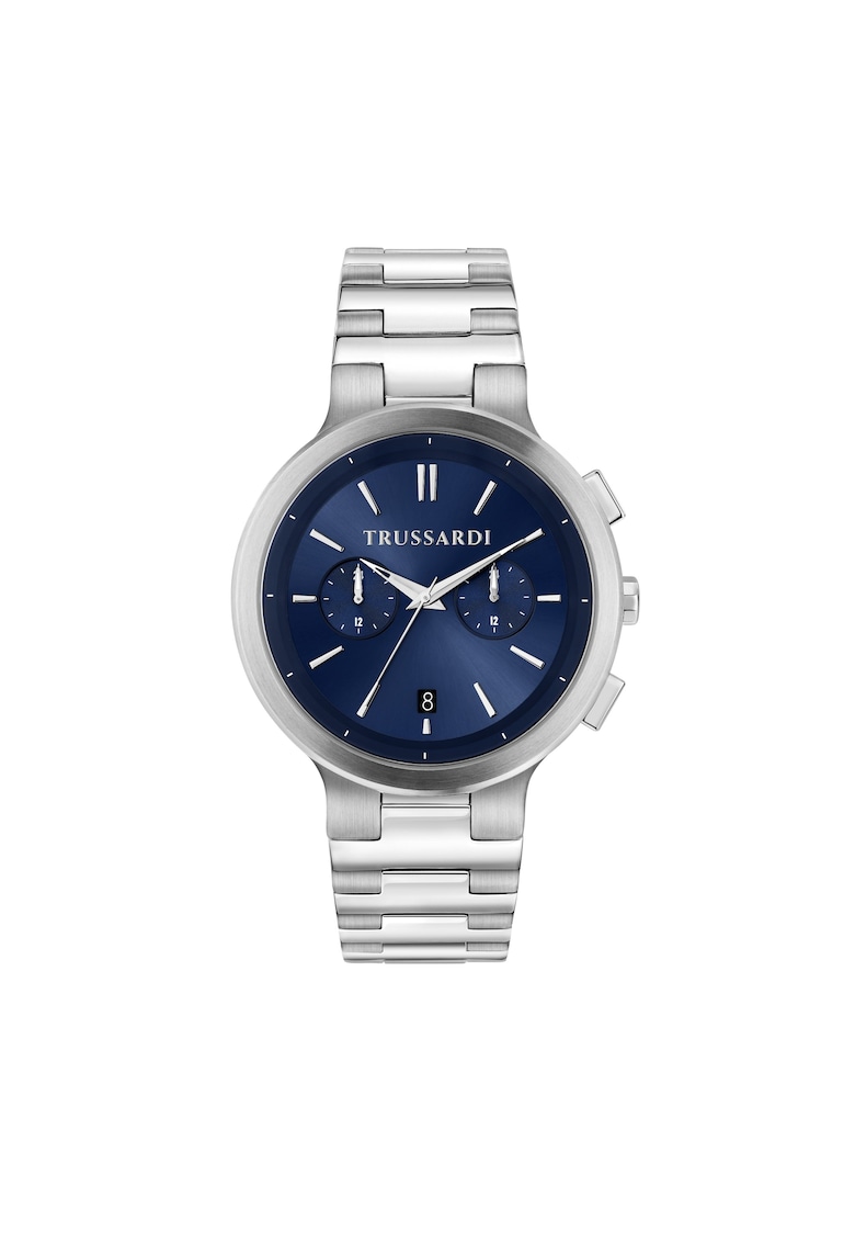 Caracteristici generale Tip mecanism: quartz Stil: casual Tip display: analog Functii: afisare data Rezistenta la apa: 5 atm Cadran Material geam: cristal mineral Culoare cadran: albastru Tip citire cadran: linii Carcasa Forma carcasa: rotunda Material carcasa: inox Culoare carcasa: argintiu Diametru carcasa: 43 mm Curea/bratara Tip: bratara Material curea/bratara: inox Culoare curea/bratara: argintiu