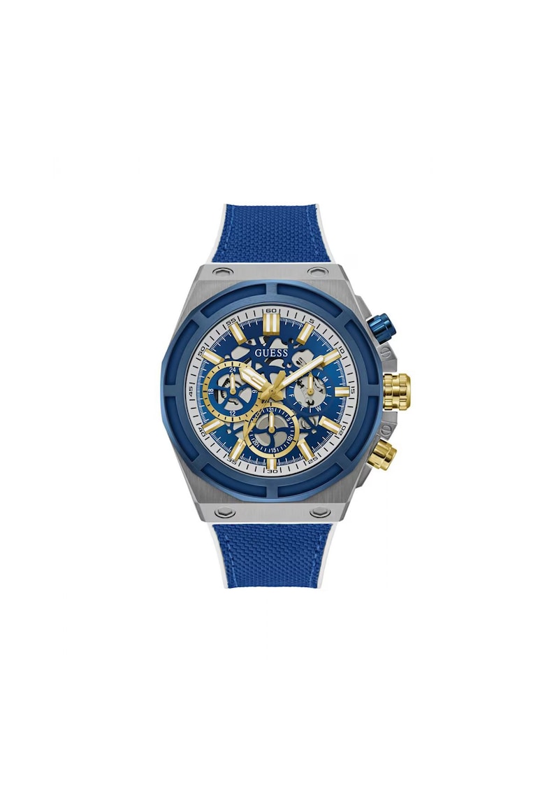 Caracteristici generale Tip mecanism: quartz Stil: casual Tip display: analog Functii: afisare data Rezistenta la apa: 5 atm Cadran Material geam: cristal mineral Culoare cadran: albastru Tip citire cadran: linii Carcasa Forma carcasa: rotunda Material carcasa: inox Culoare carcasa: argintiu Diametru carcasa: 47 mm Curea/bratara Tip: curea Material curea/bratara: silicon Culoare curea/bratara: albastru