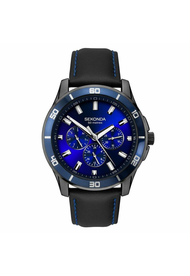 Caracteristici generale Tip mecanism: quartz Stil: sport Sistem inchidere: catarama Tip display: analog Colectie: midnight blue Rezistenta la apa: 5 atm Cadran Material geam: cristal mineral Culoare cadran: albastru Tip citire cadran: linii Carcasa Forma carcasa: rotunda Material carcasa: otel Culoare carcasa: negru Dimensiune carcasa: 43 x 43 Curea/bratara Material curea/bratara: piele naturala Culoare curea/bratara: negru