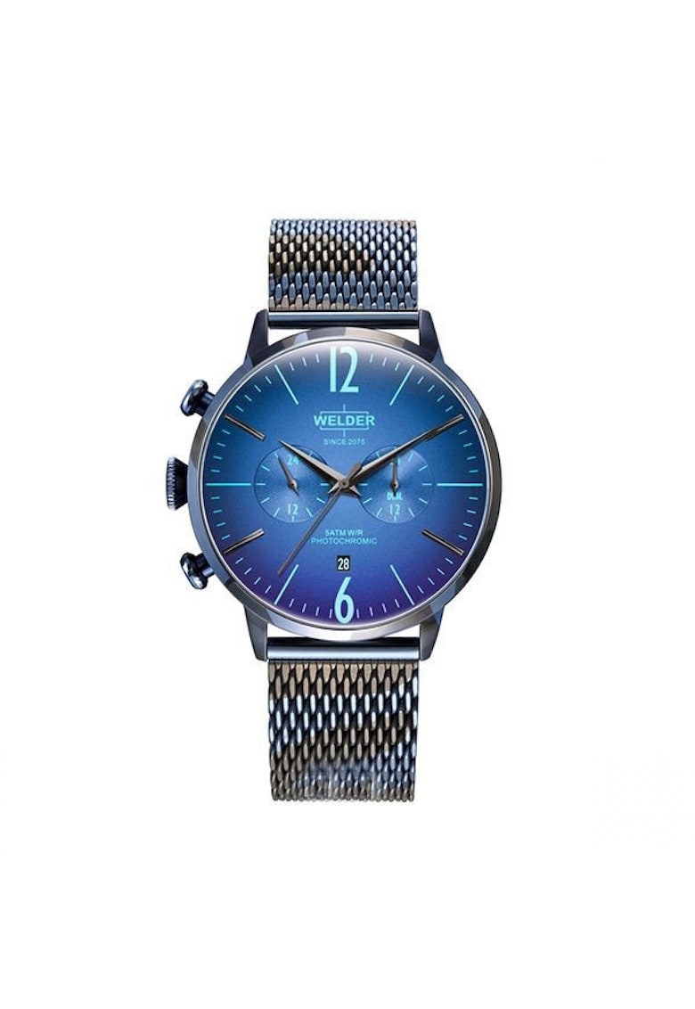 Caracteristici generale Tip mecanism: quartz Stil: casual Tip display: analog Functii: afisare data Rezistenta la apa: 5 atm Cadran Material geam: cristal mineral Culoare cadran: albastru Tip citire cadran: linii Carcasa Forma carcasa: rotunda Material carcasa: inox Culoare carcasa: albastru Diametru carcasa: 47 mm Curea/bratara Tip: plasa Material curea/bratara: inox Culoare curea/bratara: multicolor