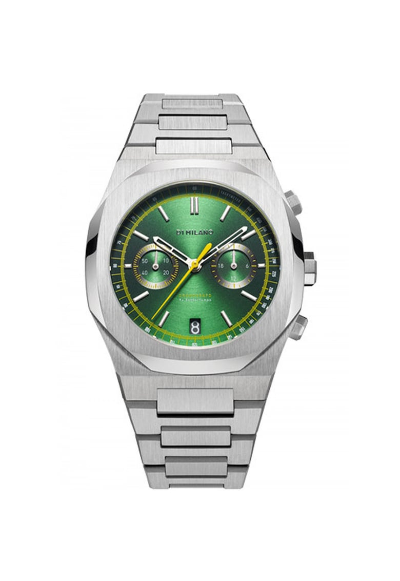 Caracteristici generale Tip mecanism: automatic Stil: casual Tip display: analog Functii: afisare data Rezistenta la apa: 5 atm Cadran Material geam: cristal safir Culoare cadran: verde Tip citire cadran: linii Carcasa Forma carcasa: rotunda Material carcasa: inox Culoare carcasa: argintiu Diametru carcasa: 42 mm Curea/bratara Tip: bratara Material curea/bratara: inox Culoare curea/bratara: argintiu