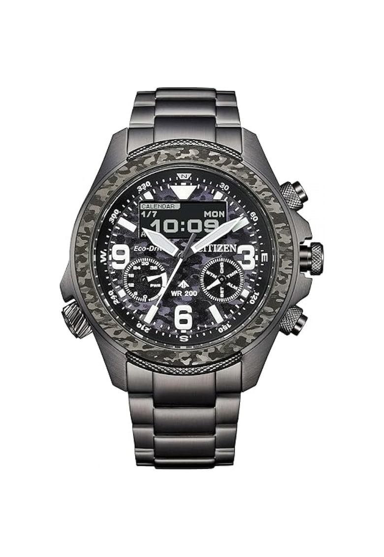 Caracteristici generale Tip mecanism: quartz Stil: casual Tip display: hibrid Functii: afisare data Rezistenta la apa: 20 atm Cadran Material geam: cristal safir Culoare cadran: gri Tip citire cadran: cifre arabe Carcasa Forma carcasa: rotunda Material carcasa: inox Diametru carcasa: 43 mm Curea/bratara Tip: curea Material curea/bratara: inox Culoare curea/bratara: negru