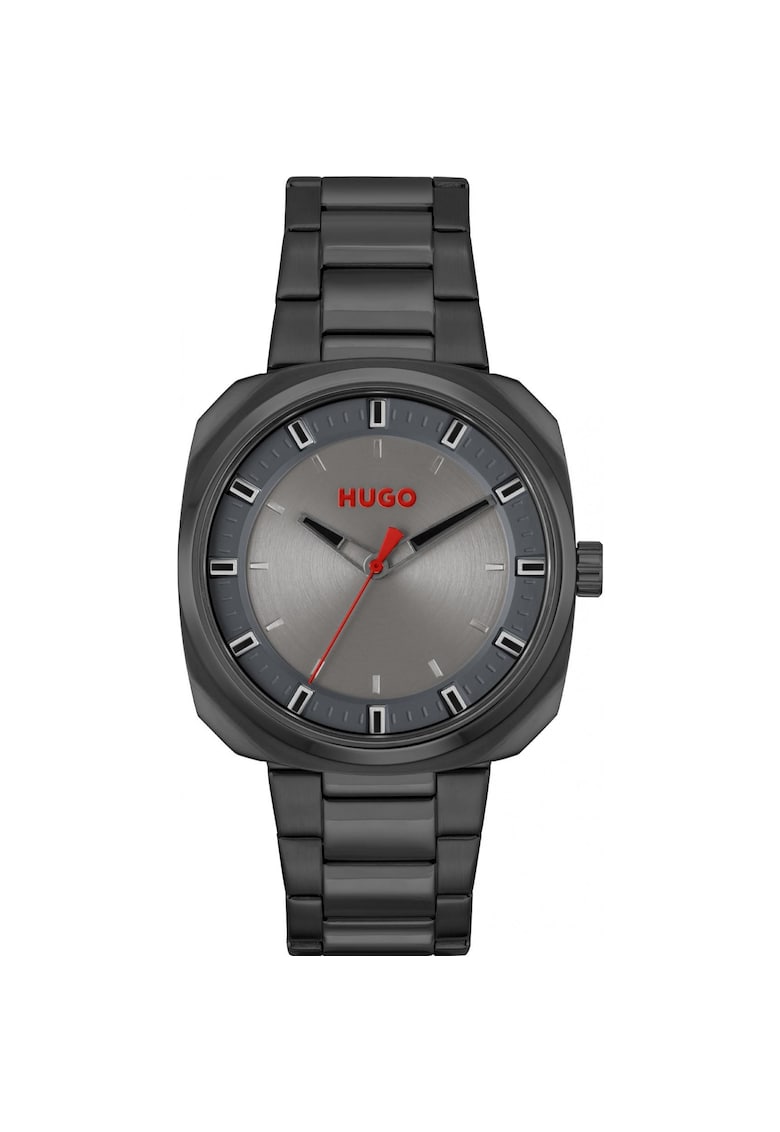 Caracteristici generale Tip mecanism: quartz Stil: casual Tip display: analog Functii: minut Rezistenta la apa: 5 atm Cadran Material geam: cristal mineral Culoare cadran: gri Tip citire cadran: linii Carcasa Forma carcasa: patrata Material carcasa: inox Culoare carcasa: gri Diametru carcasa: 42 mm Curea/bratara Tip: bratara Material curea/bratara: inox Culoare curea/bratara: gri
