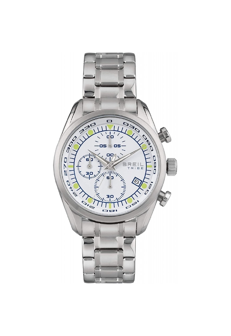Caracteristici generale Tip mecanism: quartz Stil: casual Tip display: analog Functii: cronograf Rezistenta la apa: 5 atm Cadran Material geam: cristal mineral Culoare cadran: alb Tip citire cadran: linii Carcasa Forma carcasa: rotunda Material carcasa: inox Culoare carcasa: argintiu Diametru carcasa: 41 mm Curea/bratara Tip: bratara Material curea/bratara: inox Culoare curea/bratara: argintiu