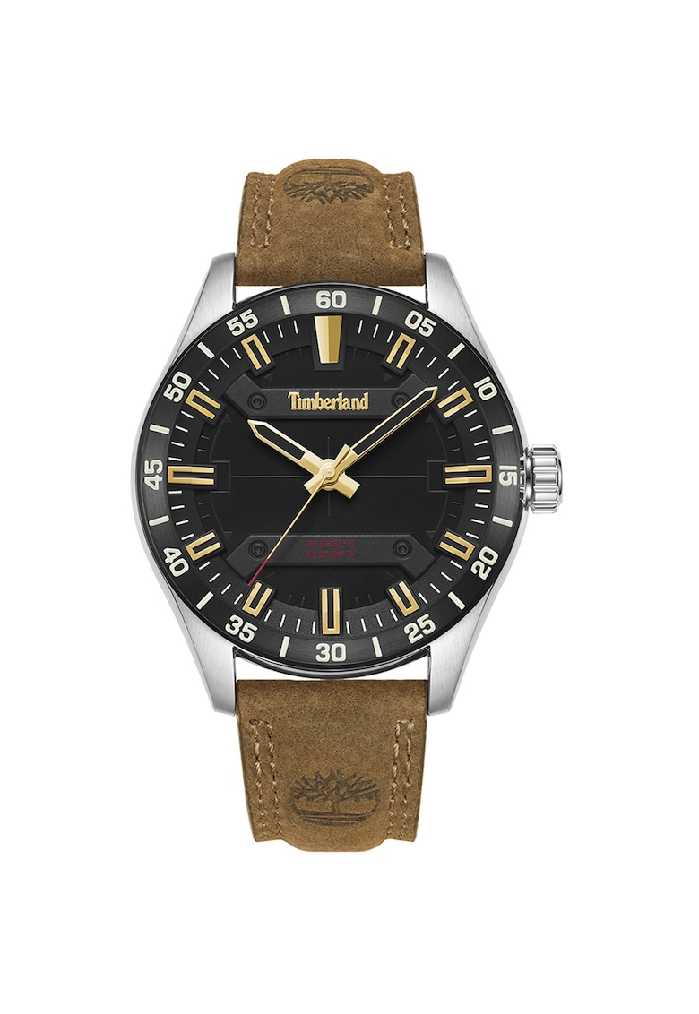 Caracteristici generale Tip mecanism: quartz Stil: casual Tip display: analog Functii: minut Rezistenta la apa: 5 atm Cadran Material geam: cristal mineral Culoare cadran: negru Tip citire cadran: linii Carcasa Forma carcasa: rotunda Material carcasa: inox Culoare carcasa: negru Diametru carcasa: 46 mm Curea/bratara Tip: curea Material curea/bratara: piele naturala Culoare curea/bratara: maro