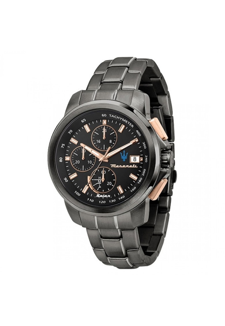 Caracteristici generale Tip mecanism: quartz Stil: casual Tip display: analog Functii: cronograf Rezistenta la apa: 10 atm Cadran Material geam: cristal mineral Culoare cadran: negru Tip citire cadran: linii Carcasa Forma carcasa: rotunda Material carcasa: inox Culoare carcasa: negru Diametru carcasa: 44 mm Curea/bratara Tip: bratara Material curea/bratara: inox Culoare curea/bratara: negru