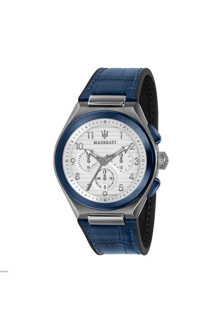 Caracteristici generale Tip mecanism: quartz Stil: casual Tip display: analog Functii: afisare data Rezistenta la apa: 10 atm Cadran Material geam: cristal mineral Culoare cadran: alb Tip citire cadran: cifre arabe Carcasa Forma carcasa: rotunda Material carcasa: inox Culoare carcasa: argintiu Diametru carcasa: 43 mm Curea/bratara Tip: curea Material curea/bratara: piele naturala Culoare curea/bratara: albastru