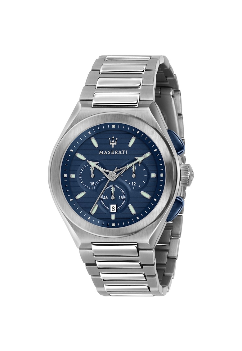 Caracteristici generale Tip mecanism: quartz Stil: elegant Tip display: analog Functii: afisare data Rezistenta la apa: 10 atm Cadran Material geam: cristal mineral Culoare cadran: albastru Tip citire cadran: linii Carcasa Forma carcasa: rotunda Material carcasa: inox Culoare carcasa: argintiu Diametru carcasa: 43 mm Curea/bratara Tip: bratara Material curea/bratara: inox Culoare curea/bratara: argintiu